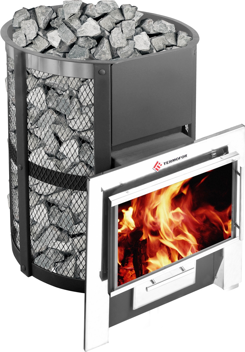 Печь для бани Кольчуга 9-14 (нержавеющая сетка, панорамная дверка)
