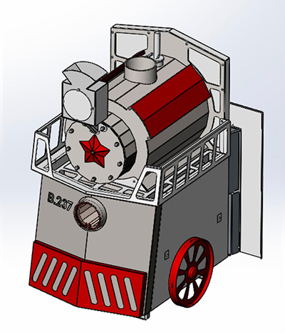 Комплектация: печь «Паровоз 14‑18 плазма» с выносным топливным каналом, паровозным свистком, «паровозной фарой», выдвижным зольником и заливной горловиной с обратным клапаном.